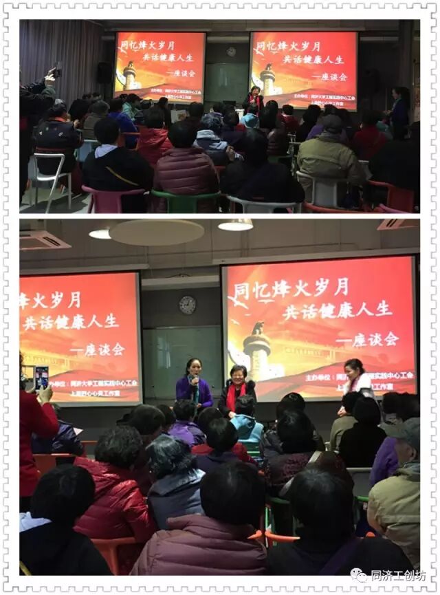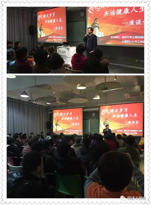 是同济工程实践中心充满温暖和感动的一天 ,这一天同济大学工程实践中心为深爱着同济的老同志们举办了《同忆烽火岁月,共话健康风雨人生》为主题的100人专场爱心公益活动。